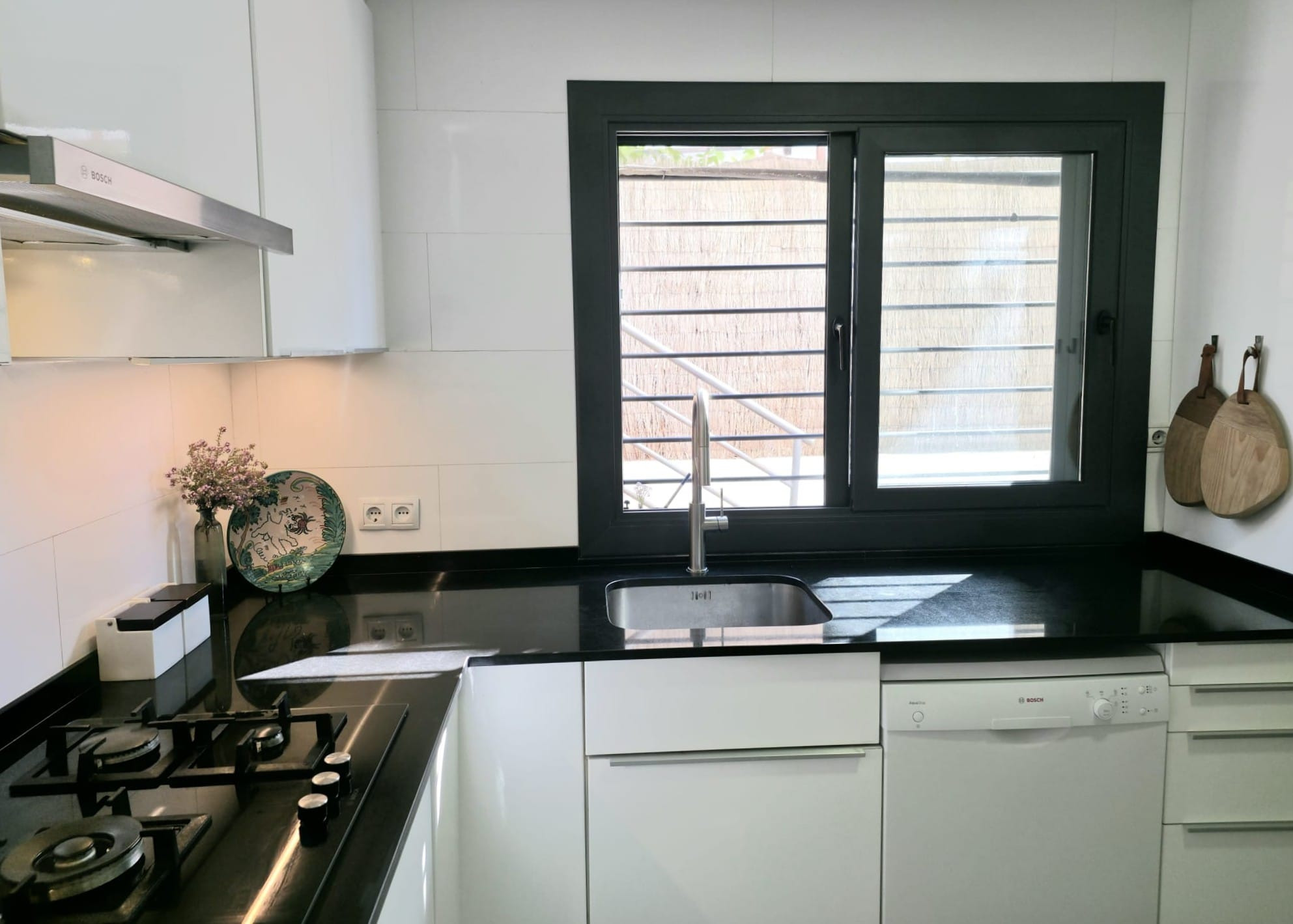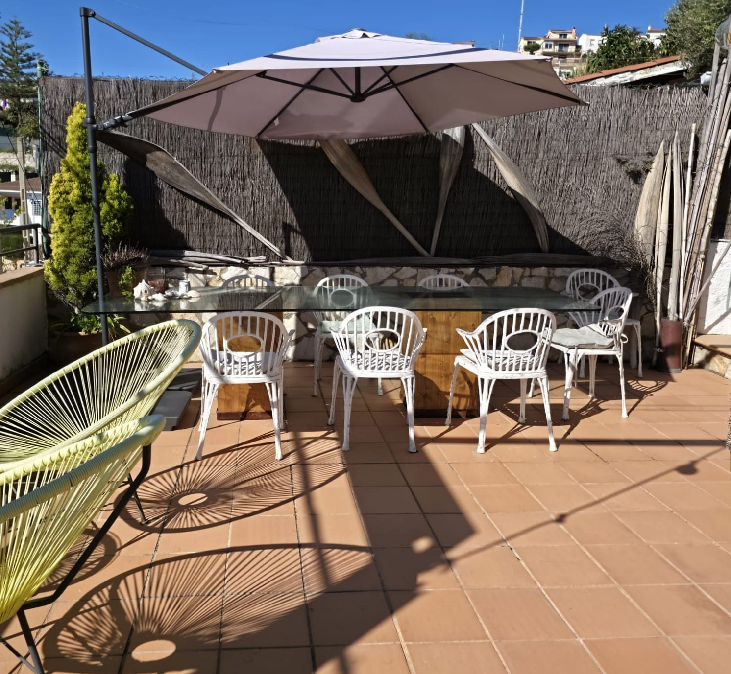 En el exterior, la vivienda cuenta con una agradable zona ajardinada destinada al ocio y al descanso, perfecta para compartir momentos en familia o con amigos, con una barbacoa móvil ideal para disfrutar de comidas al aire libre.