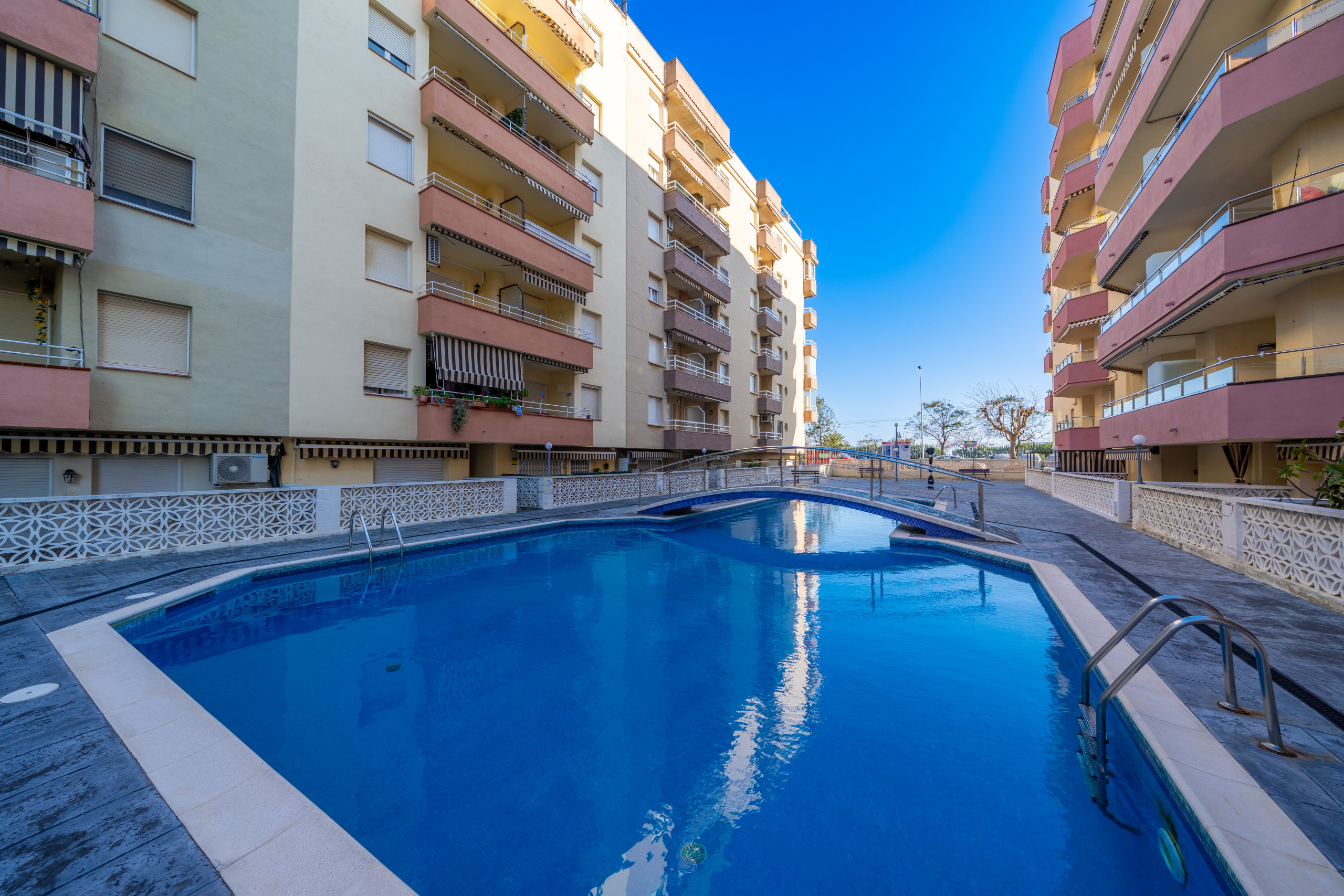 A l'exterior, podran aprofitar una àmplia zona comunitària amb piscina per a adults i els més petits, perfecta per refrescar-se i passar moments divertits en família durant els càlids dies d'estiu. Per a major comoditat, l'apartament compta amb plaça d'aparcament en un edifici proper i servei de Wi-Fi.