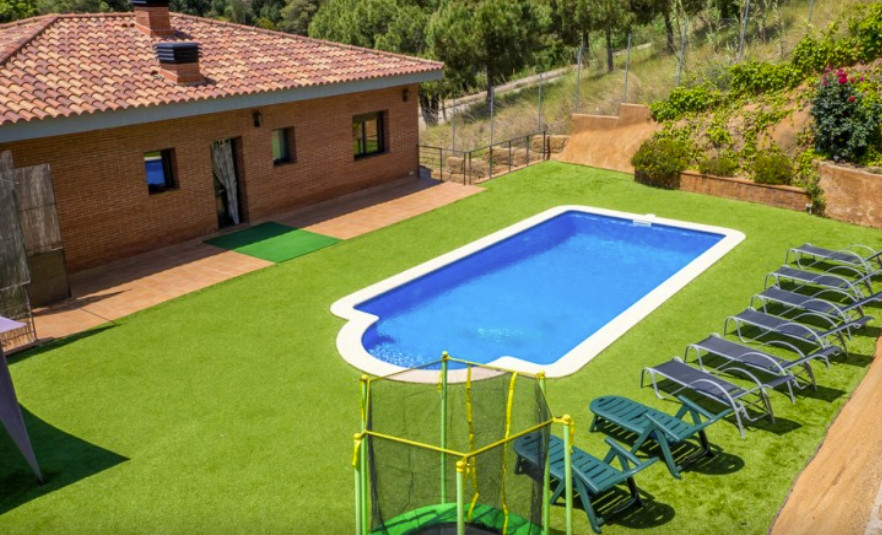 Magnificent Villa with pool and private garden. It has wifi, air conditioning and parking space within the property for greater security. Spacious house with all the amenities to spend wonderful vacations in the town of Calella. You will be able to enjoy the tranquility, and one of the best beaches located on the Barcelona coast. The house is divided into two floors, has a spacious living-dining room, fully equipped kitchen, 3 bathrooms with shower and 5 large bedrooms.